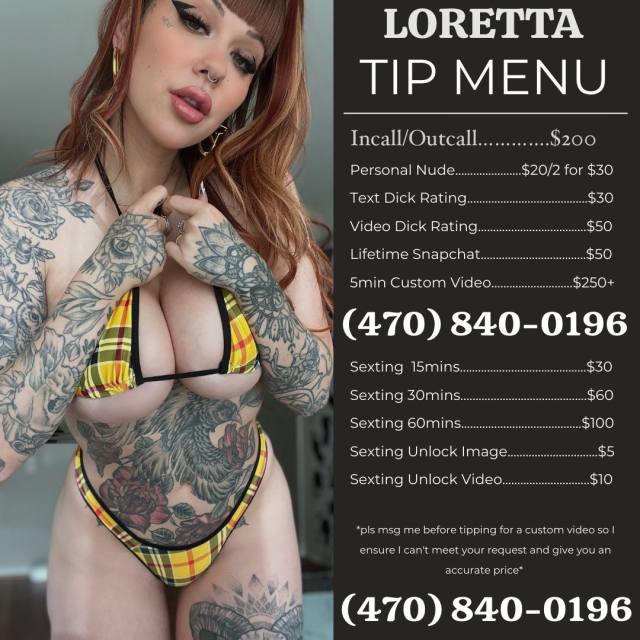 💦💦❤ I'm flirty😉 sexy😍 &fun🤪 🔥MY PUSSY IS WET🥰COME AND FUCK ME ❤️ Im the ultimate experience. 👑 👸🏻White / 🥂25/ 😈 / 😽 / 🍃My name is Loretta 📱 💃🏻 My full session include erotic lick eat & GFE &new 69 style &BBBJ+BJv no condom &body to body Nuru massage &shower together &kissing and touch me & B2B, Anal, Head and Pussy Available bj , bare back , oral , no condom) Any kinda fetish I’m independent!! 🕐Available 24/7… so u never have to wait😌 💄If you are interested give me a Text @📲 +1 (470) 840-0196 or Add my Snap👻:Darlinglorettax